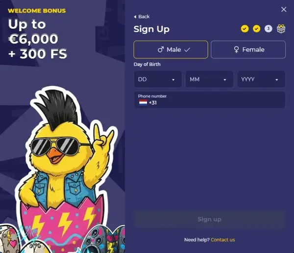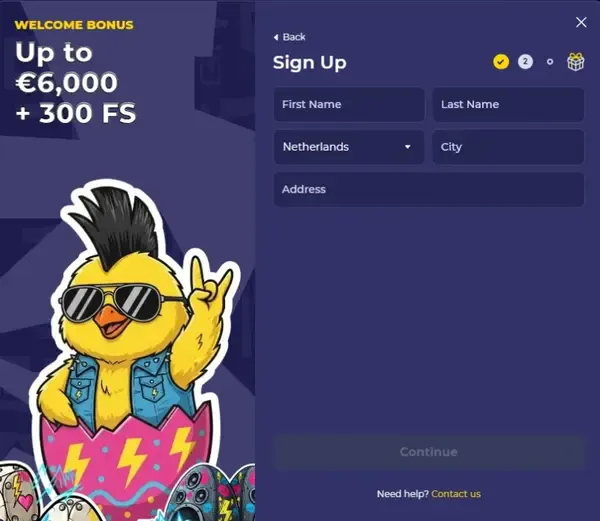 Vul je volledige naam, geboortedatum en geslacht in zoals gevraagd in het formulier. Geef contactgegevens op zoals telefoonnummer en adres, omdat deze uitbetalingen en verificatiecontroles ondersteunen. Selecteer je voorkeursvaluta; Nederlandse spelers kiezen meestal EUR, maar we ondersteunen ook crypto en andere valuta. Je kunt ook basisvoorkeuren aanpassen, zoals hoe je accountmeldingen wilt ontvangen.